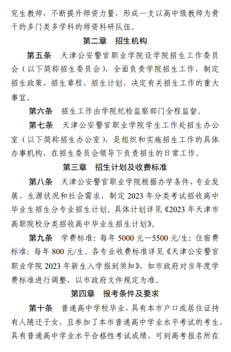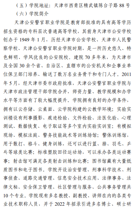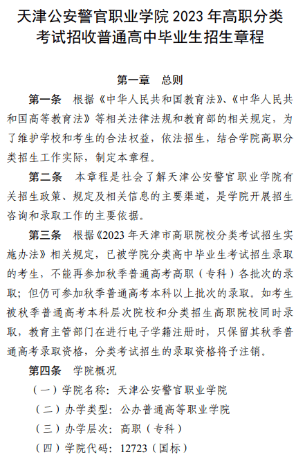 天津公安警官职业学院2023年天津市高职分类考试招收普通高中毕业生招生章程